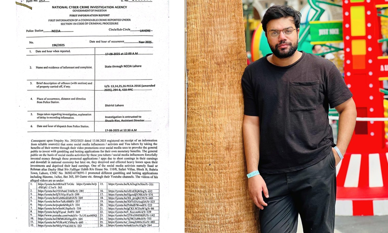 نیشنل سائبر کرائم انویسٹی گیشن ایجنسی (این سی سی آئی اے) لاہور نے معروف یوٹیوبر سعد الرحمان المعروف ڈکی بھائی کے خلاف جوا ایپس پروموٹ کرنے کے الزامات پر مقدمہ درج کیا گیا ہے، جنہیں گزشتہ روز لاہور ایئرپورٹ سے گرفتار کیا گیا تھا۔