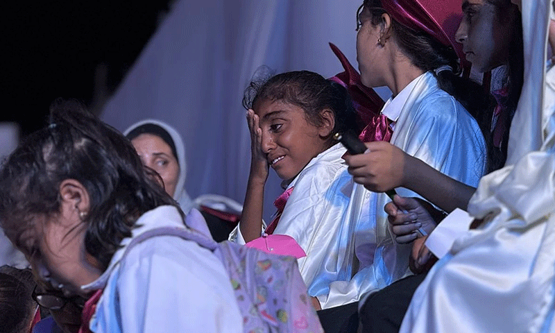 محصور خطے میں جاری جنگ اور تباہی کے سائے میں ایک دردناک منظر اس وقت سامنے آیا جب قریۃ الوفاء یتیم خانہ کے ایک ہزار فلسطینی بچے گریجویشن کی تقریب میں فارغ التحصیل ہوئے۔