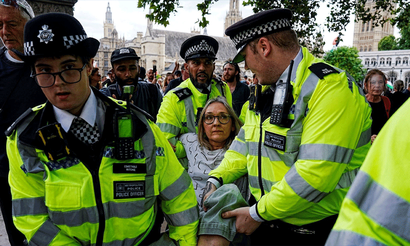 برطانیہ میں یہ احتجاج گزشتہ ماہ کے بعد سب سے بڑا تھا جب 532 افراد کو گرفتار کیا گیا تھا۔