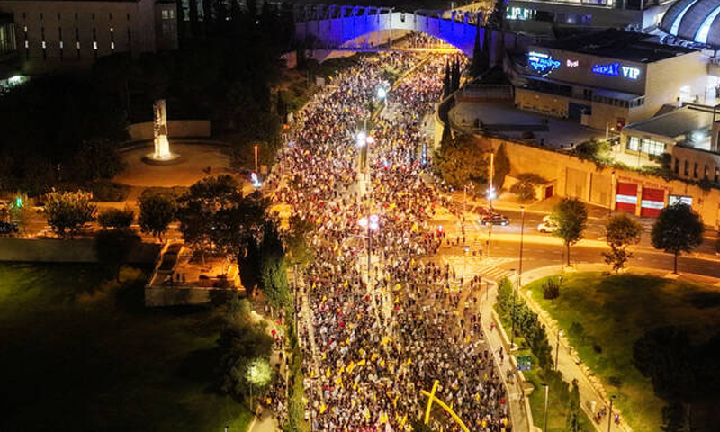تل ابیب میں اب ہر ہفتے احتجاجی ریلیاں نکالی جا رہی ہیں جو اب بڑے مظاہروں کی صورت اختیار کر چکی ہیں۔ منتظمین کے مطابق ہفتے کی شب ہونے والے اجتماع میں ہزاروں افراد شریک ہوئے جبکہ یروشلم میں بھی ایک بڑا مظاہرہ کیا گیا۔