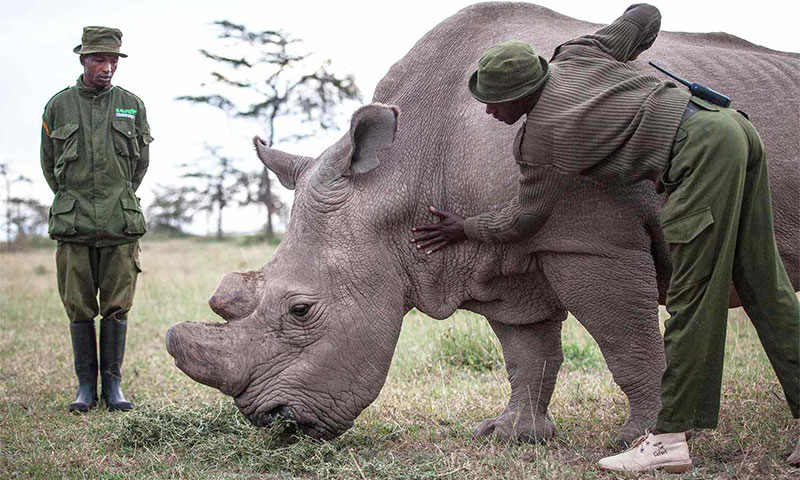 دنیا میں شمالی سفید گینڈے کی نسل اب معدومی کے دہانے پر پہنچ چکی ہے اور اس نوع کے صرف 2 زندہ جانور باقی رہ گئے ہیں۔ نایجن (Najin) اور فاتُو (Fatu) نامی یہ دونوں مادہ گینڈے اس وقت کینیا کے ایک محفوظ مقام پر 24 گھنٹے سخت نگرانی میں زندگی گزار رہے ہیں۔
