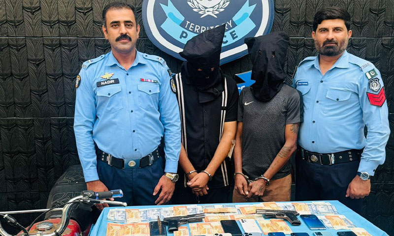 ترجمان اسلام آباد پولیس کے مطابق گرفتار ملزمان کی شناخت علی حنظلہ اور ارسلان کے ناموں سے ہوئی ہے۔ ملزمان کے قبضے سے چھینی گئی نقدی، 14 قیمتی موبائل فون، وارداتوں میں استعمال ہونے والا موٹر سائیکل اور اسلحہ بمعہ ایمونیشن برآمد کر لیا گیا ہے۔