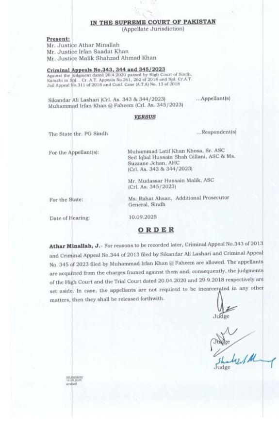 تاہم ملزمان نے اس فیصلے کے خلاف سپریم کورٹ سے رجوع کیا، جہاں آج انہیں بری کردیا گیا۔