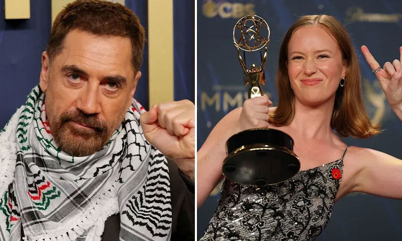 ہالی ووڈ کے سب سے بڑے ٹی وی ایوارڈز، 77ویں سالانہ ایمی ایوارڈز کی تقریب میں متعدد فنکاروں نے فلسطینیوں کے ساتھ اظہار یکجہتی کرتے ہوئے ’فری فلسطین‘ کے نعرے بلند کیے۔