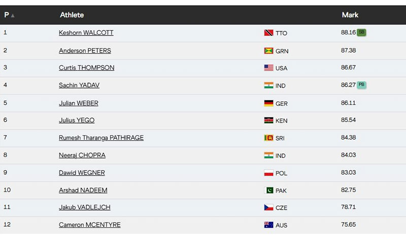 ٹرینیڈاڈ اینڈ ٹوباگو کے کیشورن والکاٹ نے شاندار کارکردگی دکھاتے ہوئے 88.16 میٹر کی شاندار تھرو کے ساتھ پہلی بار ورلڈ ایتھلیٹکس چیمپیئن شپ کا طلائی تمغہ اپنے نام کیا۔
