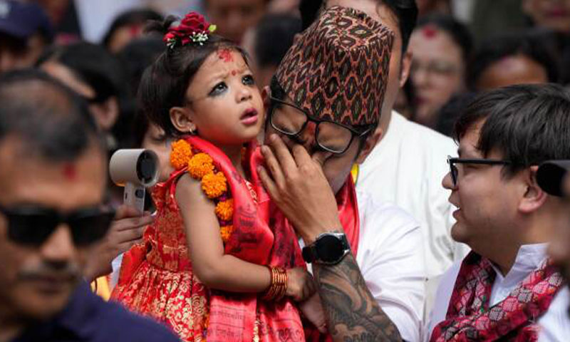 سابقہ کمارى ترشنا شاکیہ، جو اب 11 برس کی ہیں، اس موقع پر مندر کے پچھلے دروازے سے پالکی میں روانہ ہوئیں۔ کمارى کی زندگی محدود اور مخصوص ہوتی ہے، تاہم حالیہ برسوں میں روایات میں تبدیلی کے بعد انہیں نجی اساتذہ سے تعلیم اور جدید سہولتوں کی اجازت دی گئی ہے۔