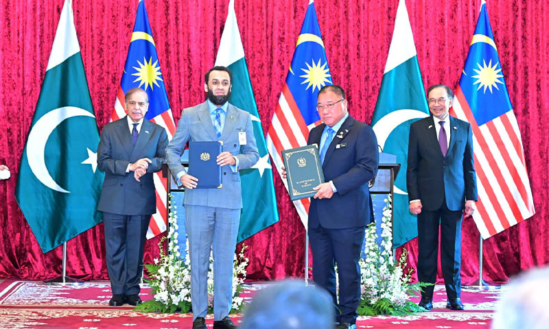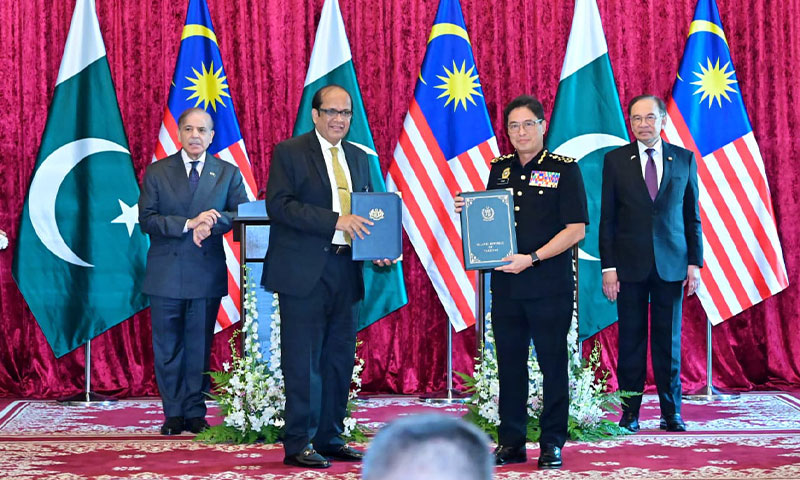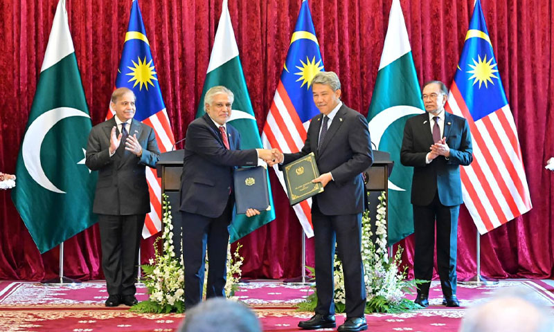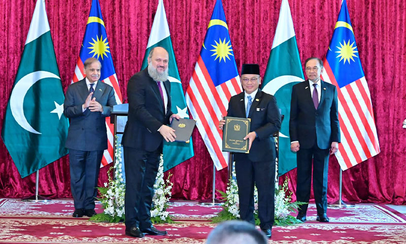 اعلامیے میں کہا گیا کہ پاکستان اور ملائیشیا خطے کے امن، ترقی اور پائیدار معاشی تعاون کے لیے اپنے تعلقات کو نئی بلندیوں تک لے جانے کے لیے پرعزم ہیں۔