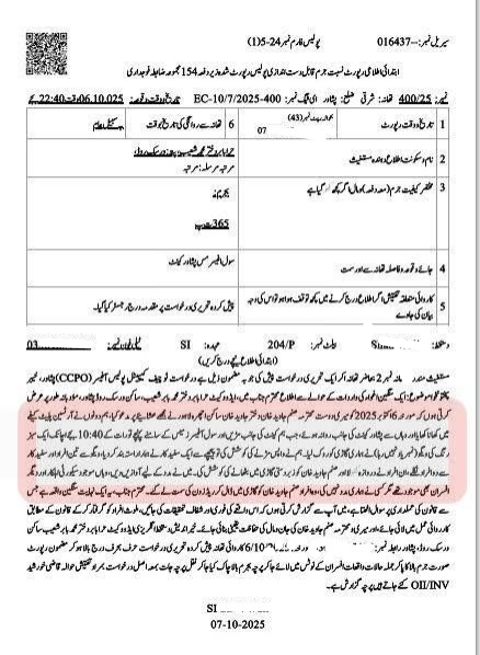 مدعی کے مطابق واقعہ وزیراعلیٰ ہاؤس کے قریب رات 10 بج کر 40 منٹ پر پیش آیا، جب وہ کھانا کھانے کے بعد پشاور کے ریڈ زون کی طرف جا رہے تھے۔