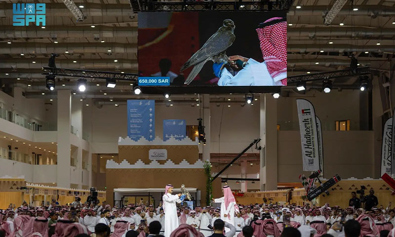 بین الاقوامی سعودی فالکنز اینڈ ہنٹنگ ایگزیبیشن 2025 میں تاریخ کا سب سے مہنگا منگولیائی باز 6 لاکھ 50 ہزار سعودی ریال (قریباً 4 کروڑ 87 لاکھ روپے) میں نیلام ہوا۔