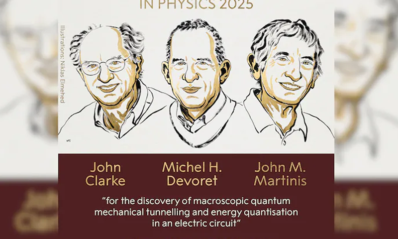 رائل سویڈش اکیڈمی آف سائنسز نے 2025 کے نوبل انعام برائے طبیعیات کا اعلان کرتے ہوئے کہا ہے کہ یہ اعزاز تین ممتاز امریکی سائنسدانوں، جان کلارک، مشیل ڈیورے اور جان مارٹینس کو دیا گیا ہے۔ ان سائنسدانوں کو یہ انعام برقی سرکٹس میں میکروسکوپک کوانٹم میکینیکل ٹنلنگ اور توانائی کی مقداری سطحوں (Energy Quantisation) کی دریافت پر دیا گیا ہے۔