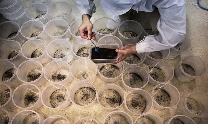 فیکٹری میں مچھر پیدا کرنے کا عمل اس طرح ہوتا ہے کہ ہزاروں ٹرے میں پانی موجود ہوتا ہے جس کا درجہ حرارت کنٹرول کیا جاتا ہے تاکہ لاروا نشوونما پا سکے۔