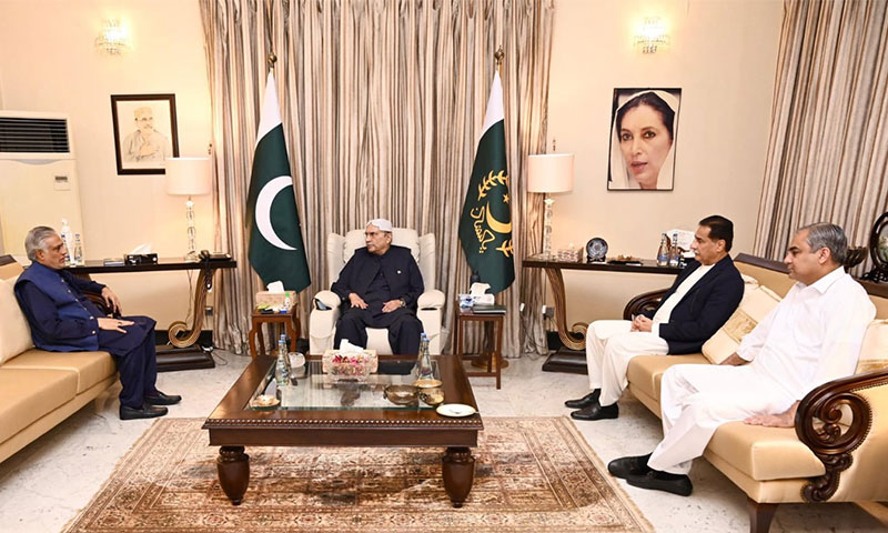 صدرِ مملکت آصف علی زرداری سے نائب وزیرِاعظم و وزیرِ خارجہ اسحاق ڈار، اسپیکر قومی اسمبلی ایاز صادق اور وفاقی وزیرِ داخلہ محسن نقوی نے زرداری ہاؤس نواب شاہ میں ملاقات کی۔