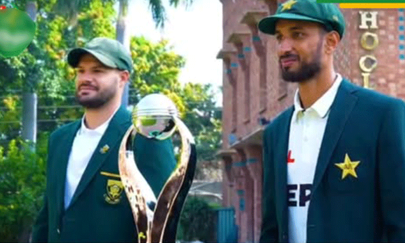 پاکستان اور ساؤتھ افریقہ کے درمیان ہونے والی ٹیسٹ سیریز سے قبل دونوں ٹیموں کے کپتانوں نے ٹرافی کی رونمائی کی۔