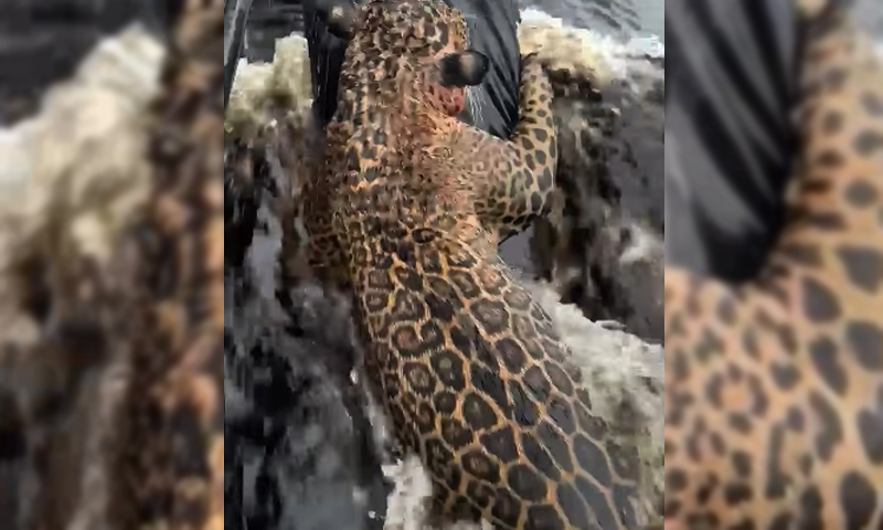 برازیل کے دریا ریو نیگرو میں ایک جگوار کو توازن کھوتے اور پانی میں جدوجہد کرتے دیکھا گیا تو فوری طور پر ملٹری پولیس اور وائلڈ لائف ماہرین نے اسے بچانے کے لیے کارروائی کی۔