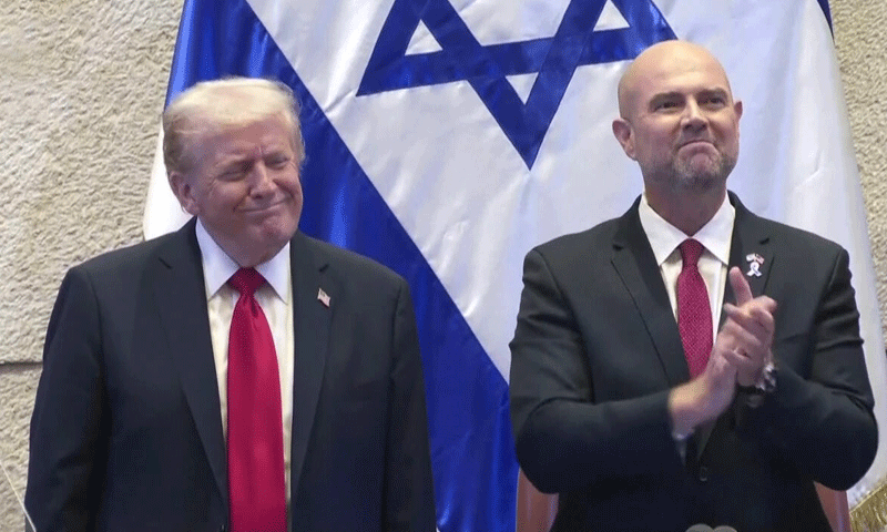 امریکی صدر ڈونلڈ ٹرمپ کو اسرائیلی پارلیمنٹ میں خطاب سے قبل ارکانِ پارلیمنٹ کی جانب سے کھڑے ہو کر زبردست خراجِ تحسین پیش کیا گیا۔یہ موقع ٹرمپ کے اس مختصر دورۂ اسرائیل کے دوران پیش آیا جو انہوں نے اسرائیل اور حماس کے درمیان جنگ بندی معاہدے کی کامیاب ثالثی کے بعد کیا۔