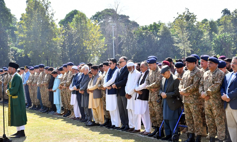 نمازِ جنازہ میں فیلڈ مارشل عاصم منیر، وفاقی وزرا، گورنر خیبرپختونخوا، سول و عسکری حکام اور عوام کی بڑی تعداد نے شرکت کی۔