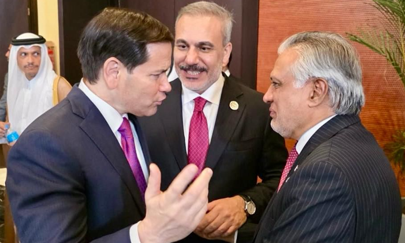 ڈپٹی وزیراعظم و وزیرِ خارجہ سینیٹر اسحاق ڈار نے مصر میں منعقدہ غزہ امن سربراہی اجلاس کے موقع پر امریکی وزیرِ خارجہ مارکو روبیو اور ترکیہ کے وزیرِ خارجہ حکان فدان سے ملاقاتیں کی ہیں۔