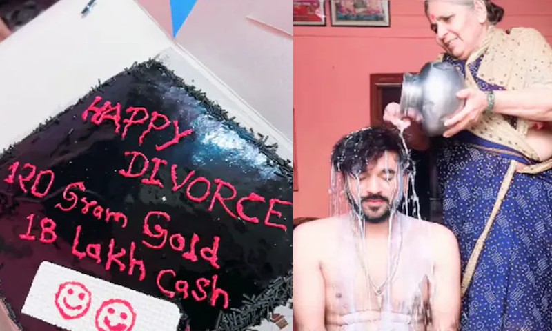 بھارت میں ایک شخص کی جانب سے طلاق کے بعد جشن منانے کی ویڈیو سوشل میڈیا پر وائرل ہو گئی ہے، جس نے عوامی توجہ حاصل کر لی ہے۔ ویڈیو میں دیکھا جا سکتا ہے کہ متعلقہ شخص اپنی والدہ کے ہمراہ دودھ کا غسل لیتا ہے اور بعد ازاں روایتی لباس میں ’ہیپی ڈائیورسڈ‘ (Happy Divorced) والا کیک کاٹ کر اپنی نئی زندگی کا آغاز کرتا ہے۔