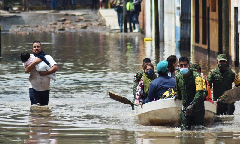 گزشتہ ہفتے شدید موسلا دھار بارشوں نے میکسیکو کے کئی ریاستوں کو لپیٹ میں لے لیا تھا جس کے نتیجے میں سڑکیں دریا بن گئیں، کئی پل اور راستے بہہ گئے اور زمین کھسکنے کے واقعات نے مزید تباہی پھیلائی۔
