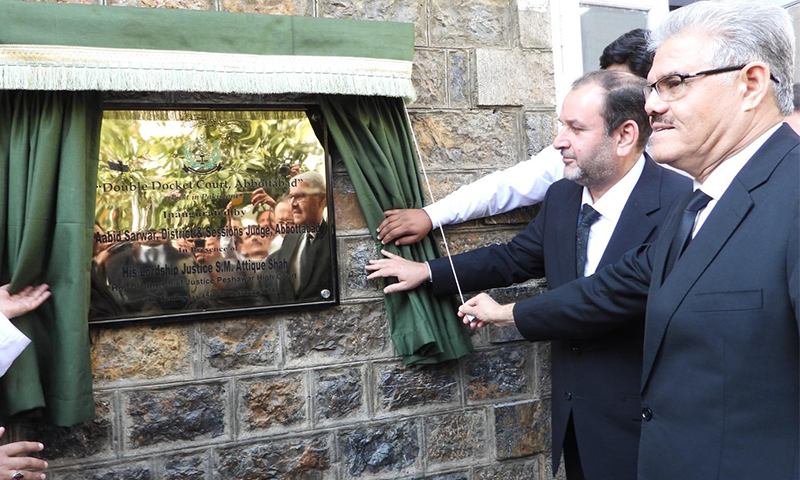 چیف جسٹس پشاور ہائیکورٹ جسٹس ایس ایم عتیق شاہ نے ایبٹ آباد میں صوبے کی پہلی ڈبل ڈوکِٹ کورٹ کا افتتاح کیا، اس موقع پرپشاور ہائیکورٹ ایبٹ آباد بینچ کے ججز، ضلعی عدلیہ کے افسران اور بار کے نمائندے بھی موجود تھے۔