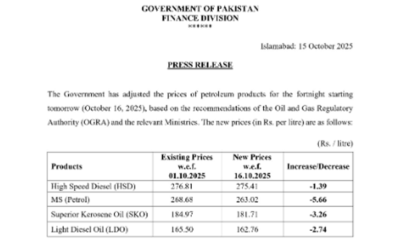 پیٹرولیم مصنوعات کی قیمتوں میں کمی کردی گئی ہے۔