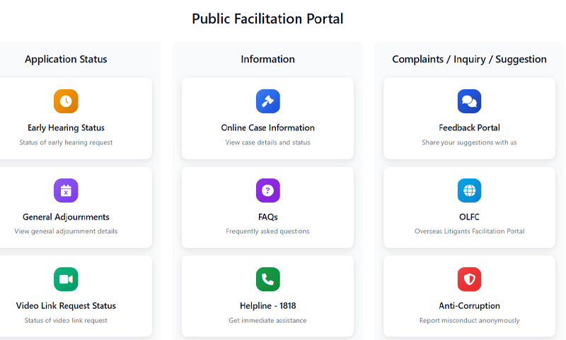 اس پورٹل کے ذریعے شہری اب مقدمات کی تفصیلات، نام، کیس نمبر یا درخواست کی نوعیت کے مطابق تلاش کر سکتے ہیں۔ اسی طرح 1818 ہیلپ لائن کے ذریعے سپریم کورٹ سے براہِ راست رہنمائی اور تکنیکی مدد حاصل کی جا سکتی ہے۔