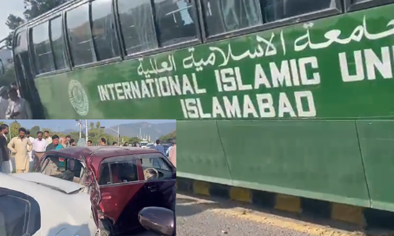 وفاقی دارالحکومت میں بین الاقوامی اسلامی یونیورسٹی کی بس کو حادثہ پیش آیا جس کے باعث ٹریفک کا نظام متاثر ہوا، تاہم خوش قسمتی سے کوئی جانی نقصان نہیں ہوا۔