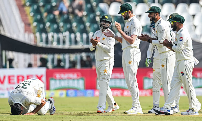 پاکستان نے 71 رنز کے خسارے کے ساتھ دوسری اننگز کا آغاز کیا، مگر محض 16 کے مجموعی اسکور پر ابتدائی 3 بیٹرز پویلین لوٹ گئے۔ امام الحق 9، عبداللہ شفیق 6 اور کپتان شان مسعود بغیر کوئی رن بنائے آؤٹ ہوئے۔