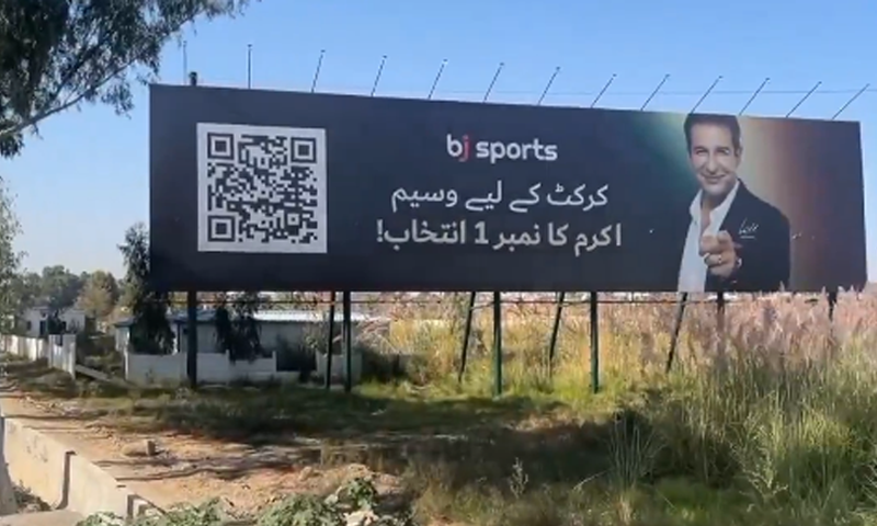 سوشل میڈیا پر ایک ویڈیو وائرل ہو رہی ہے جس میں وفاقی دارالحکومت اسلام آباد کے سری نگر ہائی وے پر ایک آن لائن جوئے کی کمپنی کا بڑا بل بورڈ دیکھا جا سکتا ہے۔ اس بل بورڈ پر پاکستان کے سابق لیجنڈری کرکٹر وسیم اکرم کی تصویر نمایاں ہے، جبکہ اس پر لکھا ہے ’کرکٹ کے لیے وسیم اکرم کا نمبر 1 انتخاب‘۔