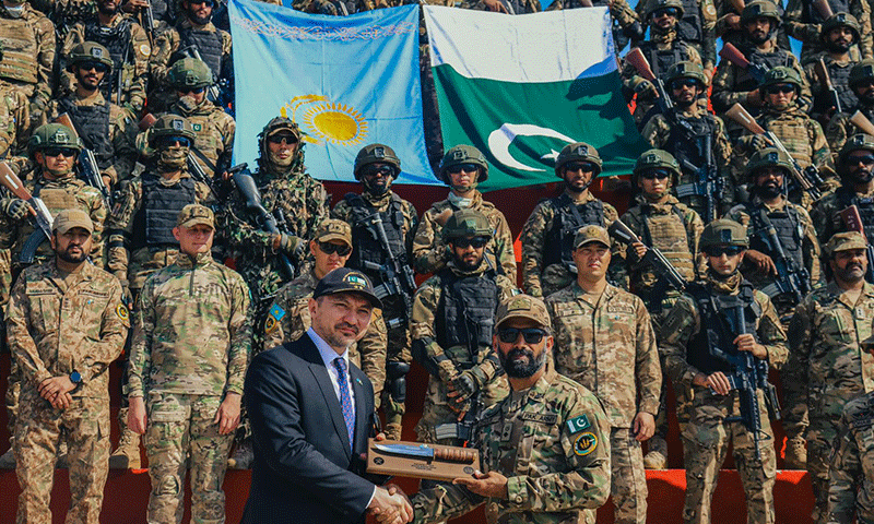 پاکستان اور قازقستان کی افواج کے مابین انسدادِ دہشتگردی کے مشترکہ مشق ’دوستارم۔فائیو‘ کی اختتامی تقریب چراٹ میں منعقد ہوئی۔