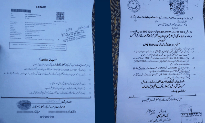 وی نیوز کو موصول ہونے والی پولیس دستاویزات کے مطابق رواں سال 23 مارچ کی سہ پہر پولیس ہیلپ لائن 15 پر ایک خاتون نے اطلاع دی کہ ایک ہاؤسنگ سوسائٹی ’نیو چکوال سٹی‘ کے قریب واقع تالاب میں انسانی اعضا تیر رہے ہیں۔