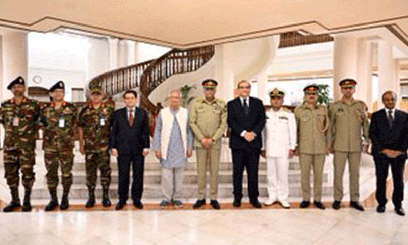 ملاقات میں پاکستان اور بنگلہ دیش کے درمیان تعلقات، دوطرفہ تجارت، سرمایہ کاری اور دفاعی تعاون کے فروغ سمیت متعدد امور پر تبادلۂ خیال کیا گیا۔