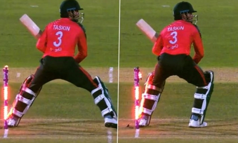 چٹاگانگ میں کھیلے گئے بنگلہ دیش اور ویسٹ انڈیز کے درمیان پہلے ٹی20 انٹرنیشل میچ میں ایک انوکھا واقعہ پیش آیا، جب بنگلہ دیشی فاسٹ بولر تسکین احمد ایک زبردست چھکا مارنے کے فوراً بعد ہٹ وکٹ آؤٹ ہوگئے۔