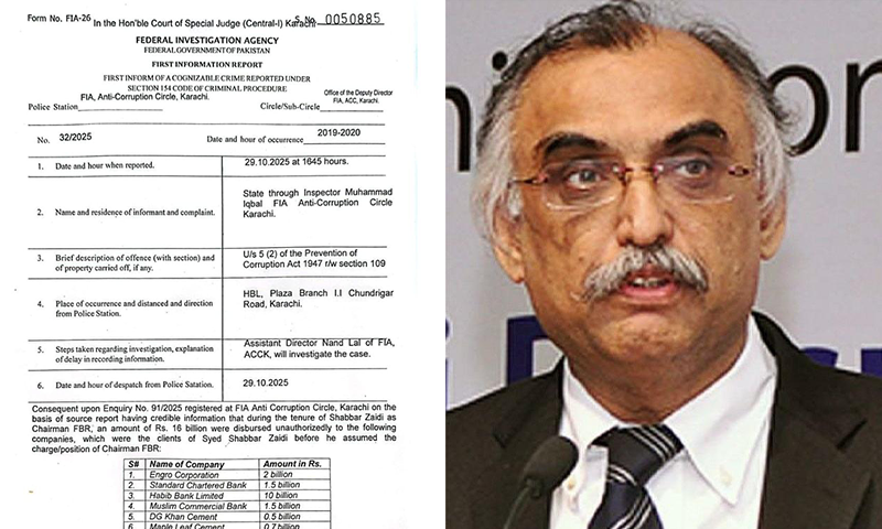 یہ بھی پڑھیں:سابق چیئرمین ایف بی آر شبر زیدی کیخلاف مالی بے ضابطگیوں کا الزام، ایف آئی اے نے مقدمہ درج کرلیا