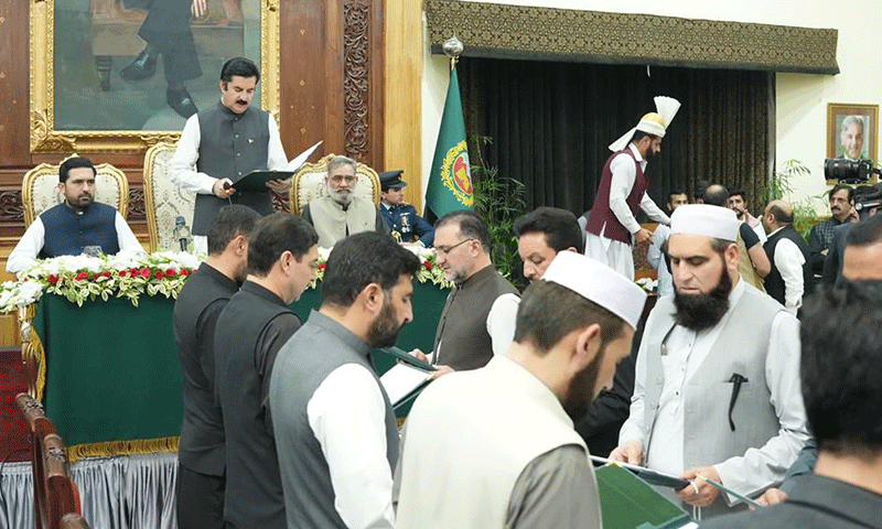 گورنر ہاؤس پشاور میں خیبر پختونخوا کابینہ کی حلف برداری کی تقریب منعقد ہوئی، جس میں صوبائی کابینہ کے 10 ارکان نے بطور صوبائی وزیر اپنے عہدے کا حلف اٹھایا۔