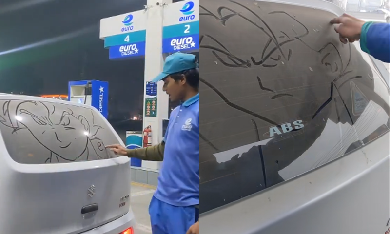 ویڈیو میں دکھایا گیا ہے کہ پیٹرول پمپ پر کام کرنے والا یہ باصلاحیت نوجوان پیٹرول ڈلوانے کے لیے آنے والی گاڑیوں کے شیشوں پر مختلف کرداروں اور خوبصورت مناظر کی تصویریں بناتا ہے۔ اس کے فن کی باریکی اور مہارت دیکھ کر صارفین داد دیے بغیر نہیں رہتے۔