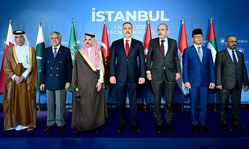 ترکیہ کے شہر استنبول میں ترکیہ، سعودی عرب، قطر، متحدہ عرب امارات، اردن، پاکستان اور انڈونیشیا کے وزرائے خارجہ نے غزہ کی موجودہ صورتحال پر ایک اہم اجلاس منعقد کیا، جس کے مشترکہ اعلامیہ میں مطالبہ کیا گیا ہے کہ غزہ کا نظم و نسق فلسطینیوں کے ہاتھ میں دیا جائے۔
