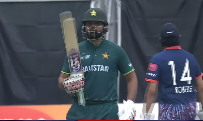 پاکستان کی جانب سے خواجہ نفی نے 9 گیندوں پر 18 ناٹ آؤٹ رنز بنائے، جن میں دو چھکے اور ایک چوکا شامل تھا۔ معاذ صداقت نے 3 گیندوں پر 7 رنز بنائے، تاہم انہیں اسٹورٹ بنی نے آؤٹ کیا۔ عبدالصمد 16 رنز کے ساتھ ناٹ آؤٹ رہے، جن میں 2 چوکے اور ایک چھکا شامل تھا۔
