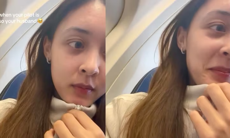 انسٹاگرام پر شیئر کی گئی وائرل ویڈیو میں دیکھا جاسکتا ہے کہ ایک خاتون کھڑکی والی سیٹ پر بیٹھی ہوئی ہے اور پرواز سے قبل ویڈیو ریکارڈ کر رہی ہوتی ہے۔ اچانک جہاز کے اسپیکر پر پائلٹ، جو خاتون کا شوہر ہے، ایک خاص اعلان کرتا ہے: