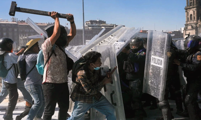 میکسیکو سٹی میں کچھ نقاب پوش مظاہرین نے نیشنل پیلس کے باہر لگے حفاظتی باڑ توڑ دیے، جہاں صدر کلاودییا شین باؤم رہائش پذیر ہیں۔ واقعے کے بعد پولیس اور مظاہرین میں جھڑپ ہوئی، جس میں پولیس نے آنسو گیس کا استعمال کیا۔