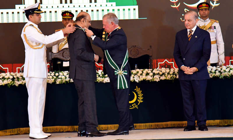 اتوار کے روز ایوان صدر میں اردن کے شاہ عبداللہ دوم کو پاکستان کا اعلیٰ ترین سول ایوارڈ دینے کے لیے پروقار تقریب کا انعقاد کیا گیا، تقریب میں صدر مملکت آصف علی زرداری، وزیراعظم شہباز شریف، فیلڈ مارشل سید عاصم منیر، وفاقی وزرا اور دیگر سیاسی و عسکری قیادت نے شرکت کی۔