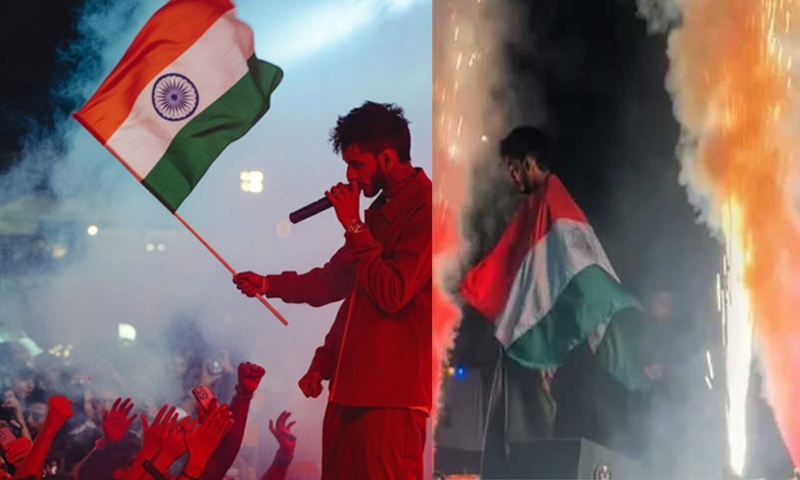 Talha Anjum, the famous Pakistani rapper from Karachi whose Spotify and YouTube are blocked in India, waves the Indian flag at his Nepal concert. pic.twitter.com/sJi6GEsu1b