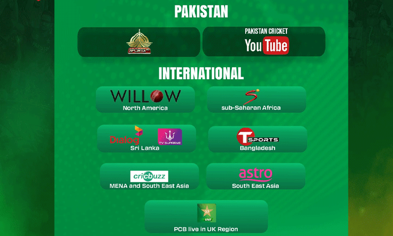 پی سی بی کے مطابق اس جامع براڈکاسٹنگ نیٹ ورک کے تحت دنیا بھر کے تماشائی ٹرائی نیشن سیریز کے ہر لمحے سے لطف اندوز ہو سکیں گے۔