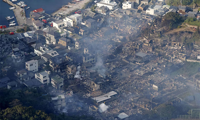 جاپان کے جنوبی ساحلی شہر اوئٹا کے نواحی علاقے میں زبردست آگ بھڑک اٹھی، جس نے 170 سے زائد عمارتیں تباہ کر دیں اور ایک شخص کی جان لے لی۔ آگ منگل کی شام شروع ہوئی اور قریباً 48,900 مربع میٹر رقبے کو اپنی لپیٹ میں لے لیا، جو فٹبال کے 7 میدانوں کے برابر ہے۔ 175 رہائشیوں کو ہنگامی پناہ گاہ میں منتقل کیا گیا۔