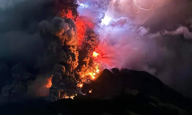 قومی ڈیزاسٹر ایجنسی کے ترجمان عبدالمہاری کے مطابق آتش فشاں کے دھماکے سے اٹھنے والا راکھ کا بادل 13 کلومیٹر (8 میل) کی بلندی تک جا پہنچا۔
