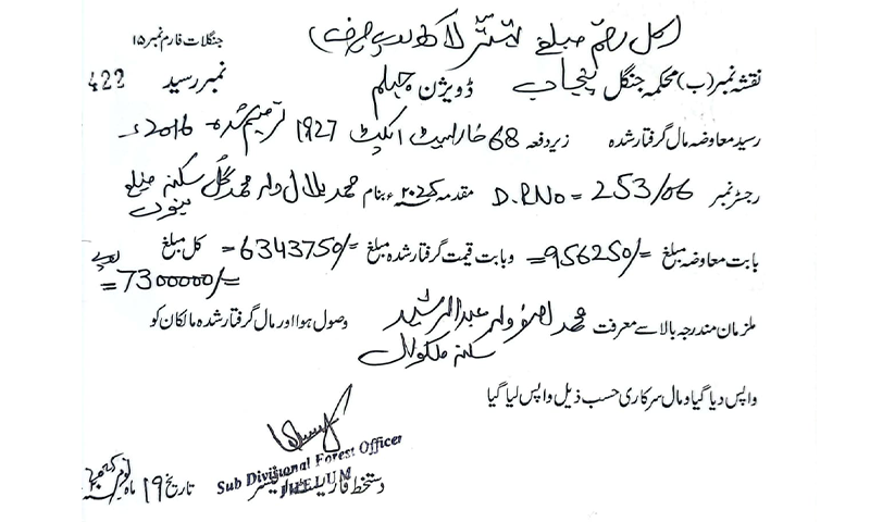 محکمہ جنگلات نے غیر قانونی طور پر لکڑی اسمگل کرنے والے ملزم محمد بلال پر ملکی تاریخ کا سب سے بڑا 73 لاکھ روپے کا جرمانہ عائد کر دیا ہے، جو کہ محکمہ کی اب تک کی ریکارڈ سزا ہے۔