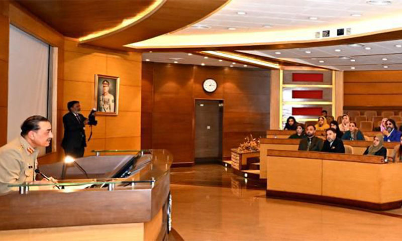 دورہ کے دوران شرکا نے فیلڈ مارشل سید عاصم منیر، کے ساتھ گفتگو میں بھی حصہ لیا۔ آرمی چیف نے علاقائی ماحول میں بڑھتی ہوئی جیو پولیٹیکل مقابلہ آرائی، سرحد پار دہشتگردی اور ہائبرڈ خطرات پر روشنی ڈالی۔