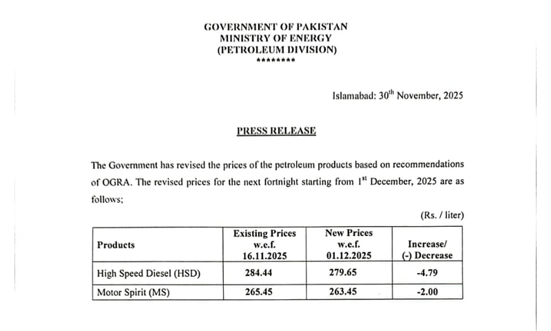 وفاقی حکومت نے پیٹرولیم مصنوعات کی قیمت میں کمی کردی ہے۔
