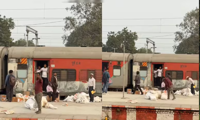 ایک مسافر کے کیمرے میں قید ویڈیو میں انڈین پوسٹ کے عملے کو ریلوے ٹریک پر پارسل پھینکتے ہوئے دکھایا گیا جس نے سوشل میڈیا صارفین کو حیران کر دیا ہے۔