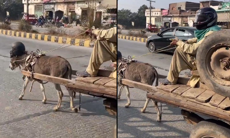 حال ہی میں ایک اور ویڈیو وائرل ہوئی ہے جس میں ایک گدھا گاڑی چلانے والے شخص نے نہ صرف خود ہیلمٹ پہنا ہوا ہے بلکہ اپنے گدھے کو بھی ہیلمٹ پہنایا ہوا ہے۔ ویڈیو بنانے والے صارف نے اس سے سوال کیا کہ آپ نے ہیلمٹ کیوں پہنا؟ جس پر اس شخص نے جواب دیا کہ میرا چالان ہوا تھا اس لیے پہنا ہے۔